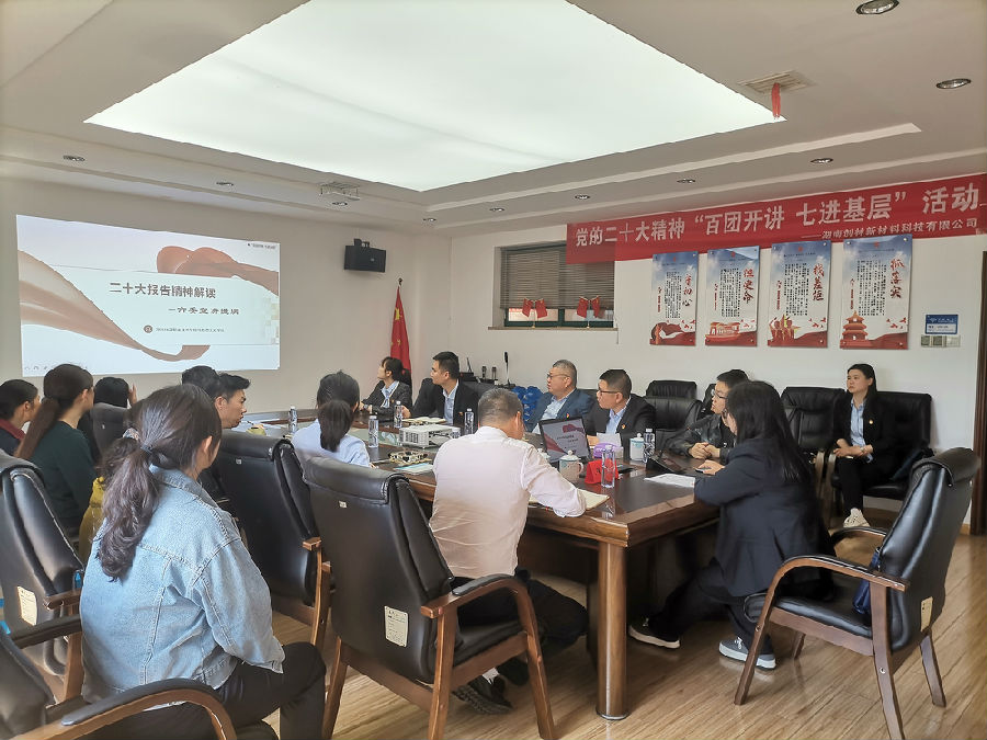 為深入學(xué)習(xí)貫徹黨的二十大精神,引導(dǎo)公司黨員干部全面、準(zhǔn)確、深刻領(lǐng)悟二十大精神。近日,中共株洲市委宣講團(tuán)成員湖南化工職業(yè)技術(shù)學(xué)院肖威副教授蒞臨我司作黨的二十大精神宣講,湖南創(chuàng)林新材管理人員、黨員及員工代表現(xiàn)場(chǎng)聆聽了宣講。