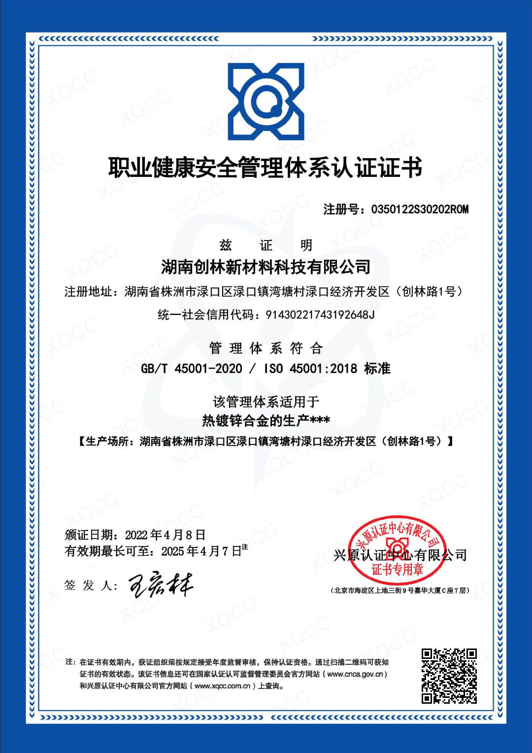 職業(yè)健康安全體系管理證書